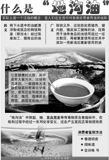 研究表明,長期攝入地溝油會對人體造成明顯傷害,如發育障礙、易患腸炎,并有肝、心和腎腫大以及脂肪肝等病變。而地溝油中的主要危害物之一黃曲霉素是一種強烈的致癌物質,其毒性是砒霜的100倍。另一個問題是倫理上的,別人吃過的油,在下水道里變質,再撈上來,你能吃得下去嗎? 那么,有沒有一種簡便的方法,可以鑒別地溝油呢?我們不妨聽聽食品科學專家和業內人士怎么說。 1、科學鑒別地溝油 目前沒有好辦法 在一個注重食品安全的時代,理想的狀態是,你下館子,隨手掏出一張試紙浸到菜里,過一會兒拿出來跟譜表比比,然后大叫:“掌柜的,換油!” 2、傳統的檢測方法 都有一定局限性 在科研工作者看來,治理地溝油的難點在于,經過洗滌、蒸餾、脫色、脫臭等精煉過程后,單從外觀和感官上,很難區分地溝油和普通油。不法商販還會把地溝油摻入食用油中,如果含量較少,更是難以檢測。 3、鑒別地溝油 冰箱顯身手? 曾在北京多家大酒樓擔任總廚、高管的特級廚師馮鵬說,一般情況下,地溝油和普通油無法區分,進貨時難免上當。他只能通過實踐來判斷:飯館炒菜之前一般要先過油,在這道“滑油”工序中,好油可反復使用七八次,而地溝油最多使用三次就會變黏,而且有哈喇味兒。 “另外,室外溫度較低時,地溝油會像棕櫚油一樣凝固,所以常有人用地溝油冒充棕櫚油!瘪T鵬說,冬天可以據此鑒別地溝油,夏天則可通過冰箱來檢驗。一些媒體認為地溝油有味道,可以聞出來,此外里面含水多,下鍋會爆響,馮鵬認為這些都是無稽之談,因為水根本摻不進油中,且地溝油也沒什么異味。 4、我們該如何 鑒別地溝油? 一看?赐该鞫,純凈的植物油呈透明狀,在生產過程中由于混入了堿脂、蠟質、雜質等物,透明度會下降;看色澤,純凈的油為無色,在生產過程中由于油料中的色素溶于油中,油才會帶色;看沉淀物,其主要成分是雜質。 二聞。每種油都有各自獨特的氣味?梢栽谑终粕系我粌傻斡,雙手合攏摩擦,發熱時仔細聞其氣味。有異味的油,說明質量有問題,有臭味的很可能就是地溝油;若有礦物油的氣味更不能買。 三嘗。用筷子取一滴油,仔細品嘗其味道。口感帶酸味的油是不合格產品,有焦苦味的油已發生酸敗,有異味的油可能是地溝油。 四聽。取油層底部的油一兩滴,涂在易燃的紙片上,點燃并聽其響聲。燃燒正常無響聲的是合格產品;燃燒不正常且發出“吱吱”聲音的,水分超標,是不合格產品;燃燒時發出“噼啪”爆炸聲,表明油的含水量嚴重超標,而且有可能是摻假產品,絕對不能購買。 五問。問商家的進貨渠道,必要時索要進貨發票或查看當地食品衛生監督部門抽樣檢測報告。 |