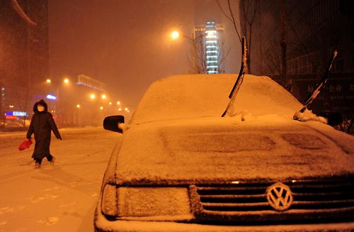 11月22日,一位沈陽市民穿著厚厚的棉衣在街上行走。當日晚,受冷空氣影響,沈陽迎來大范圍降溫和降雪,降雪給市民出行帶來極大不便。